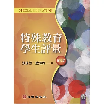 評量在特殊教育上扮演著關鍵性且重要的角色,本書旨在撰述特殊教育學生評量的相關課題。全書分為「基本理念」、「鑑定與實務」、「評量種類、領域及工具」和「整合評量」四大篇,分別闡述:(1)評量的基本概念;(2)特殊教育學生的評量取向;(3)正式評量應具備的測驗認知;(4)鑑輔會的組織及運作、各類特殊教育學生的鑑定基準及實務;(5)非正式評量;(6)認知能力、智力、語言、知覺動作、情緒與行為、性向、人格、成就及適應行為等領域的評量概念與工具介紹;(7)評量結果的整合與應用。