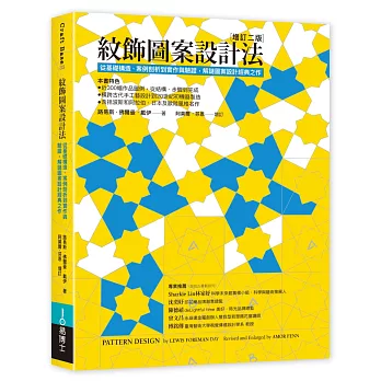 本書調查20世紀初可見的裝飾圖案,如建築細節、織品、砌磚、馬賽克、印刷物等,解析設計構造與脈絡,引領創作者從設計構想、構造線、起始方法到驗證、實作完成,展現設計紀律與藝術才能的專業之道。原著作者戴伊是英國皇家藝術學院歷史紋飾講師,致力於圖案應用藝術教育,圖案設計教學著作享譽空前。因應不輟的市場需求,三十年後芬恩接力增訂。章節架構嚴謹、體例整備,深入淺出,是有志於圖案設計或學生絕對不能錯過的經典教程。